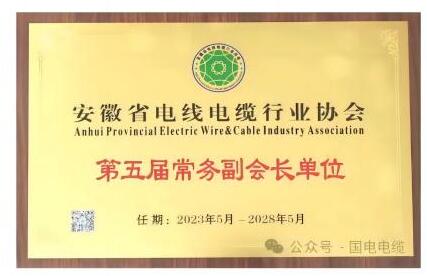 热烈祝贺国电电缆当选安徽省电线电缆行业协会第五届常务副会长单位