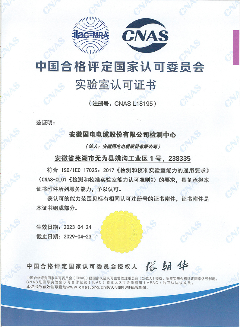 近日,亚洲欧美中文字幕5发布-日韩精品人妻AV一区二区三区-欧美激情A片一区二三区-国产激情在线观看-无码精品日韩中文字幕检测中心获得中国合格评定国家认可委员会(CNAS)颁发的正式实验室认可证书。这标志着我公司检测中心的检测技术和管理水平得到了国家认可,在电线电缆检测方面达到了国家一流水准