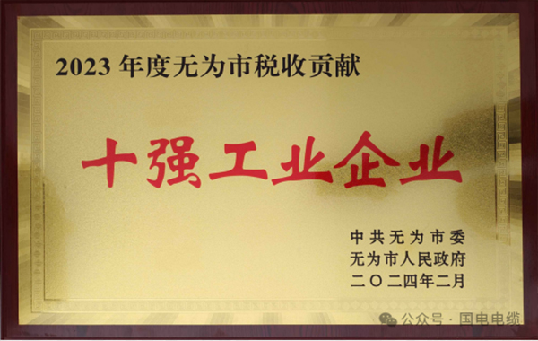 热烈祝贺国电电缆荣登芜湖市2024年度工业百强榜单