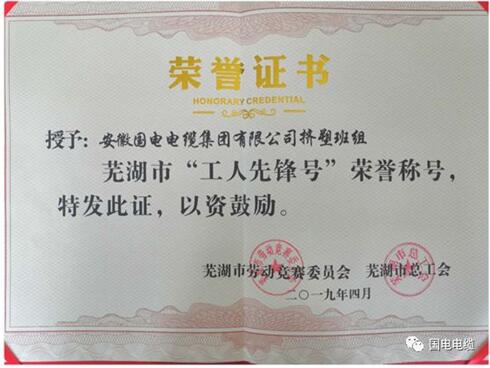 热烈祝贺我公司挤塑组员工荣获芜湖市“工人先锋号”荣誉称号